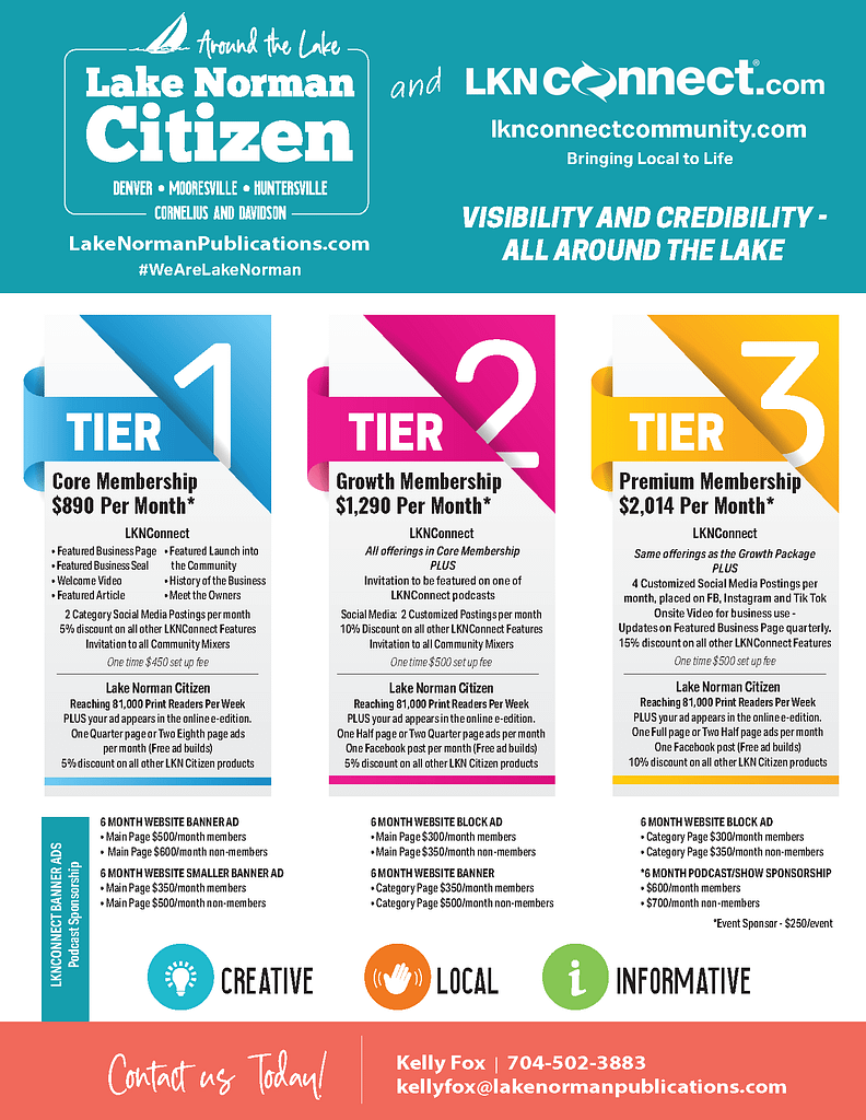 LKNConnect and the Lake Norman Citizen have joined forces to create a very comprehensive & powerful local media network for Lake Norman businesses. Together, we deliver what no single social platform or stand-alone print ad can: complete local Visibility, Credibility, and Community Connection.