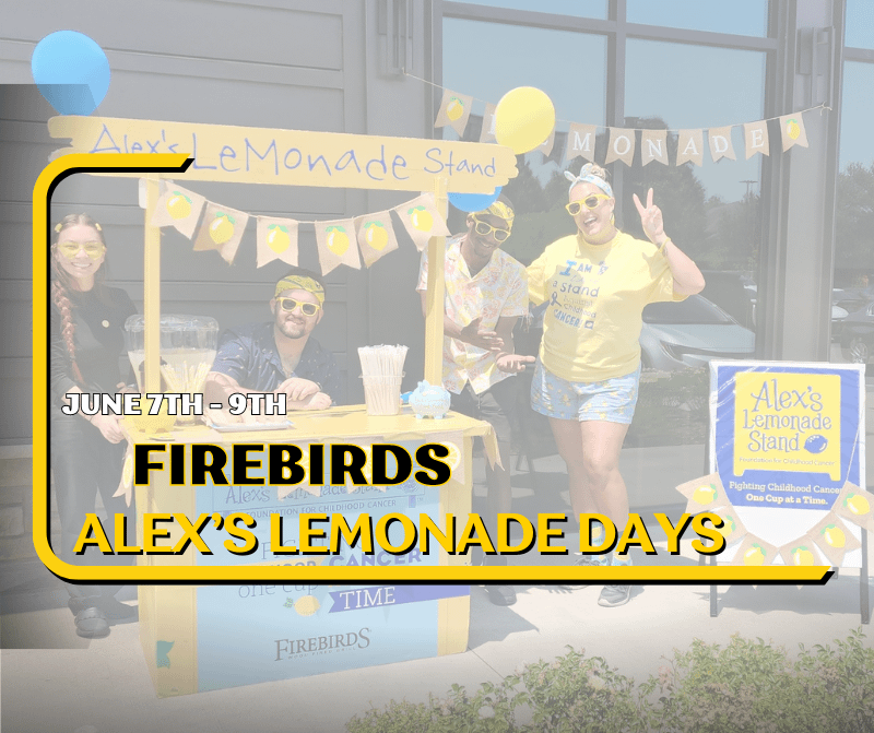 Firebirds began partnering with Alex’s Lemonade Stand Foundation in 2012, donating $1.25 from each Alex’s Lemonade sale to fight childhood cancer, totaling over $3,000,000 donated.