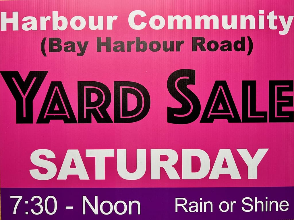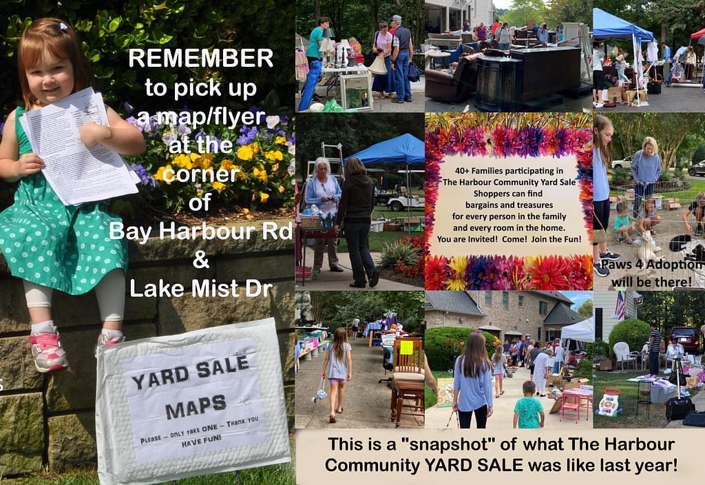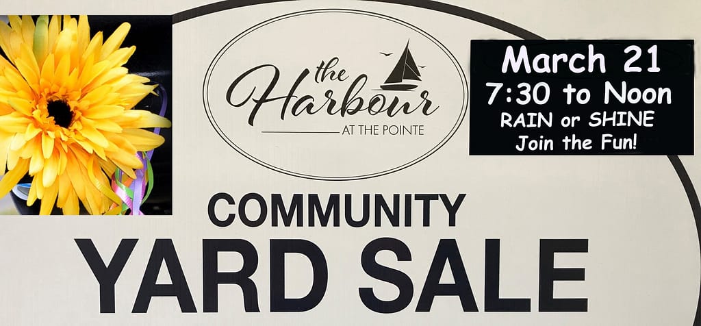 The Harbour has TWO Community YARD SALES every year.  If you enjoy this spring’s experience — be sure to keep your eyes out for the one in the fall – tentatively scheduled in mid September.