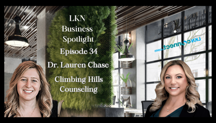 Join Andrea Ervay from LKN Connect’s Business Spotlight as she interviews Lauren Chase, PhD, the founder of Climbing Hills Counseling. Lauren shares her journey from academia to entrepreneurship, her passion for lifelong learning, and her focus on helping high-achieving women balance their busy lives. Discover how Charlotte has become an integral part of Lauren’s life and business, and learn about her favorite things to do in the city. Tune in to be inspired by her story and find out how you can connect with her.