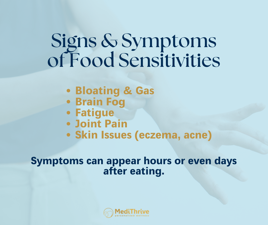 Food sensitivities can trigger a range of symptoms that affect digestion, skin, energy levels, and overall well-being. Common signs include bloating, gas, diarrhea, or constipation after eating certain foods. Other symptoms may include headaches, brain fog, fatigue, joint pain, and skin issues like eczema or acne. If you suspect food sensitivities, food sensitivity testing can help pinpoint problematic foods and support better gut health.