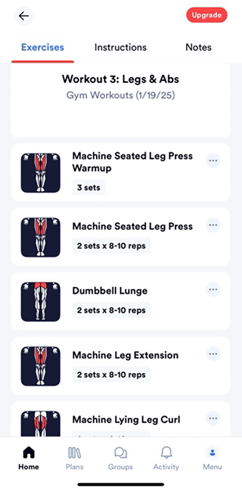 What I like about this app is that it gives you a plan to follow when you arrive at the gym. No more wandering around and trying a little of this or a little of that, and possibly not getting enough out of your workout. With Caliber, you won’t leave the gym wondering if you did enough, and you can feel confident that you are getting stronger with each workout. Upgrades are available for a fee. The screenshot below is an example of a custom plan.