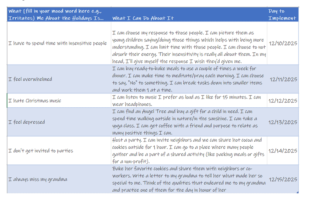 When Christmastime comes, do you secretly groan inside? Maybe you don’t even try to mask the disappointment in the Season. No shame in either. According to Psychology Today, Healthline, and HCAMidwest, 38% or more of people feel an increase in stress – which impacts mood and motivation. The Holidays make things like anxiety and depression worse for 64% of people who already feel them. You are brave to admit how you feel (even if it’s only to yourself) and you have an opportunity to do something to help lift your spirits.